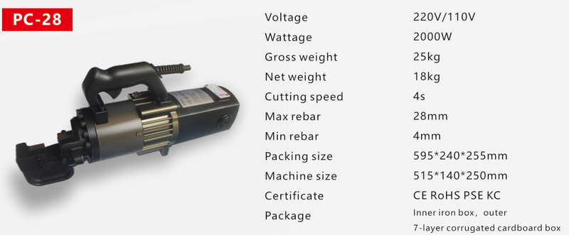 Cutter de barres d'armature portable PC-28
